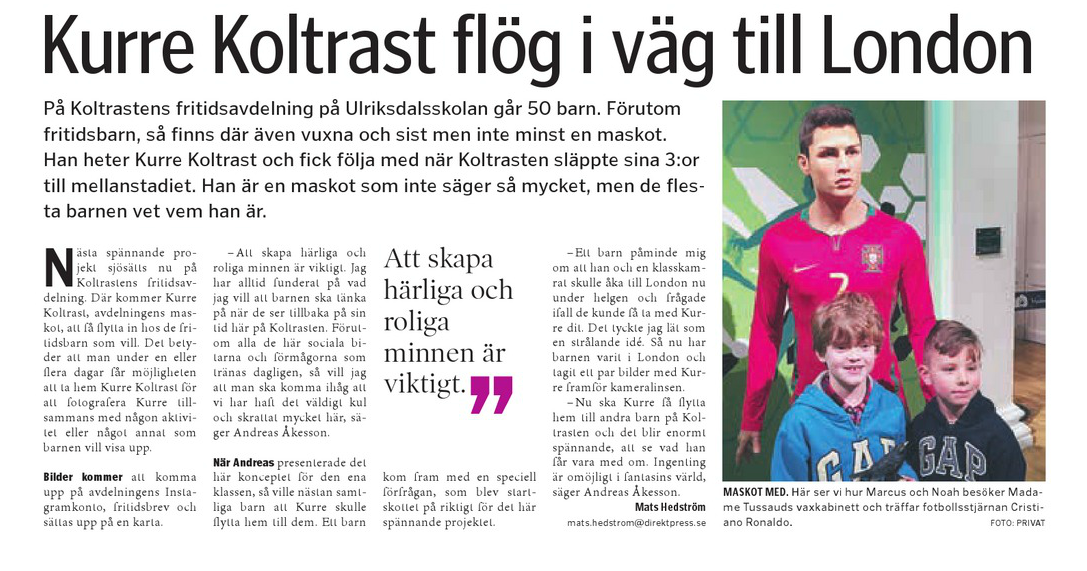 Därför har jag varit aktiv med med min kommunikation med lokaltidningen Vi i Solna, tidningen Fritidspedagogik, Skolvärlden med mera. Man får ibland läsa ibland tråkiga delar om skolan och fritids. Jag vill kunna ändra folks uppfattningar om hur fritids kan vara. Det är därför jag har varit aktiv med ett Instagramkonto som är riktad till vårdnadshavarna, regelbundna fritidsbrev, traditionell media och den vanliga dialogen med föräldrar. Vi utnyttjar varje kanal vi kan för att visa vad ett fritidshem kan vara och att vi vill ännu mera.